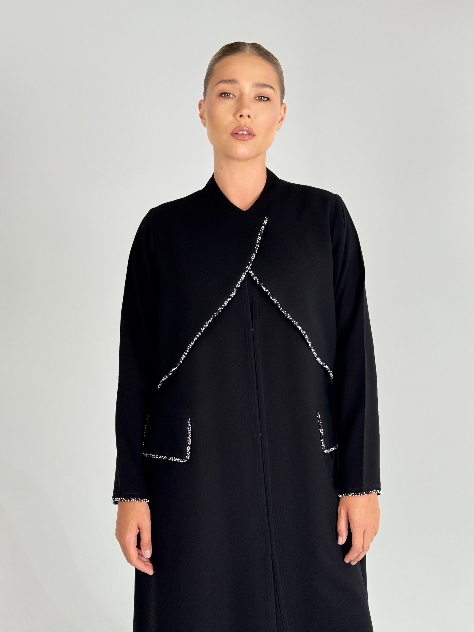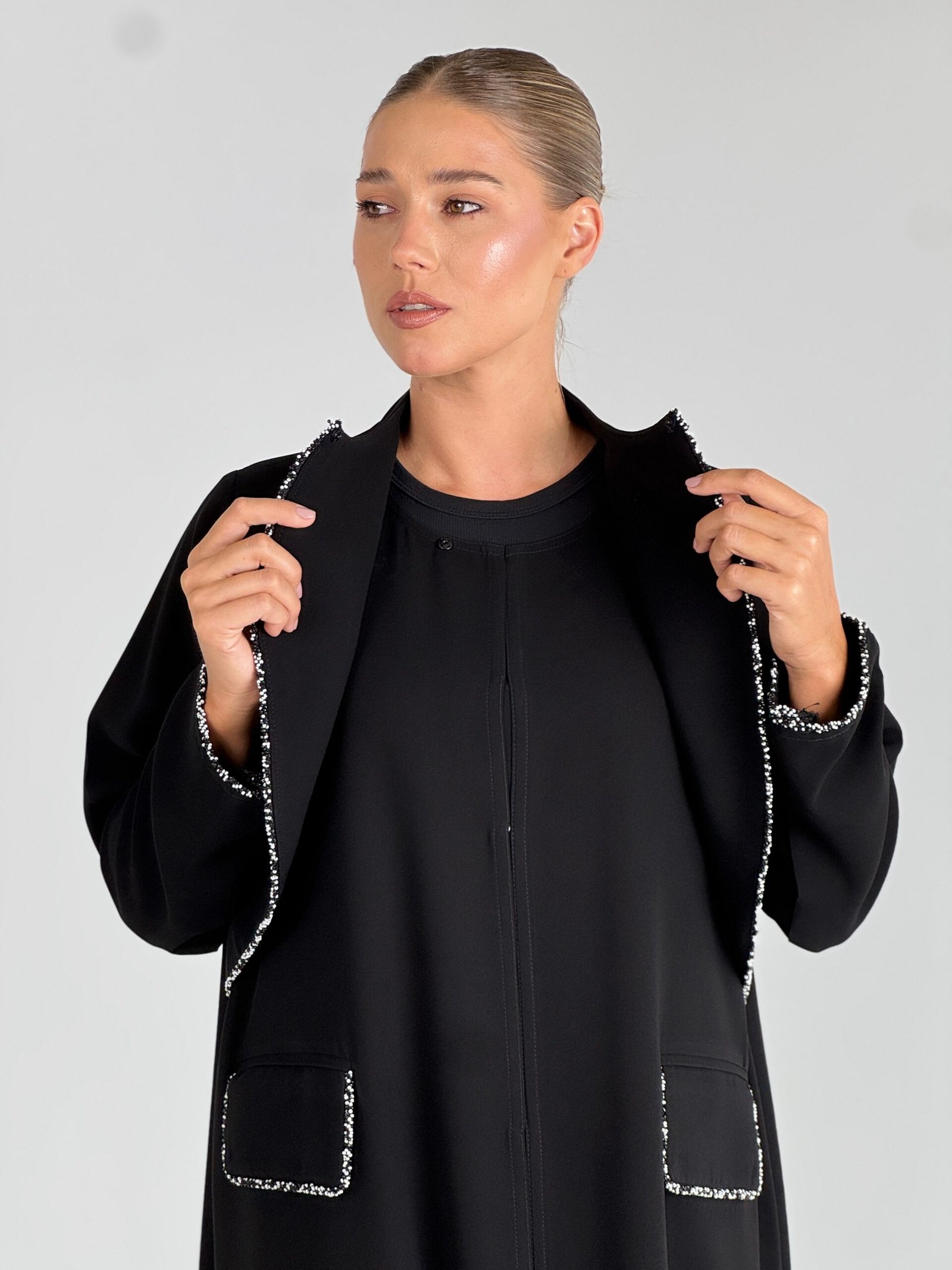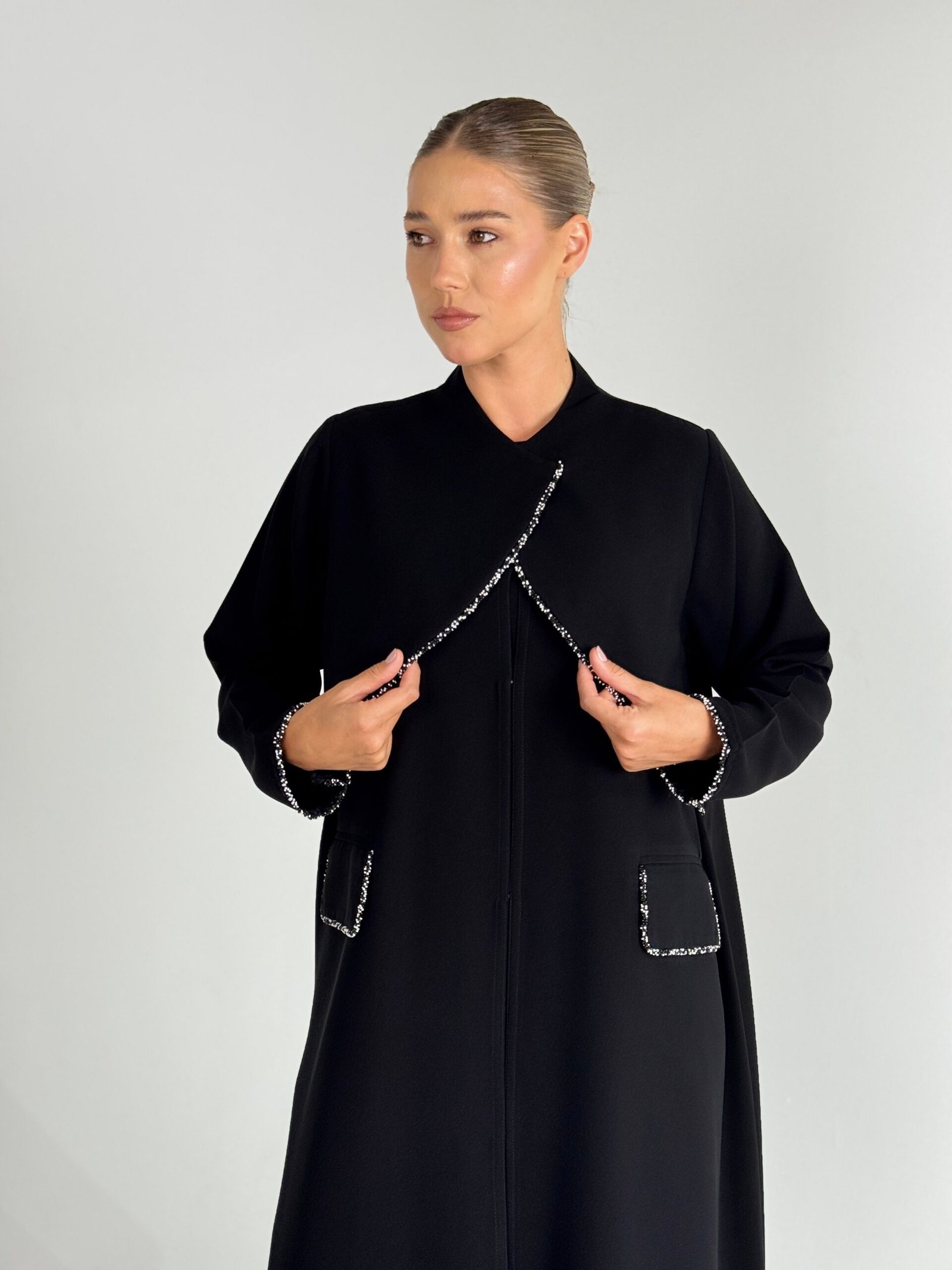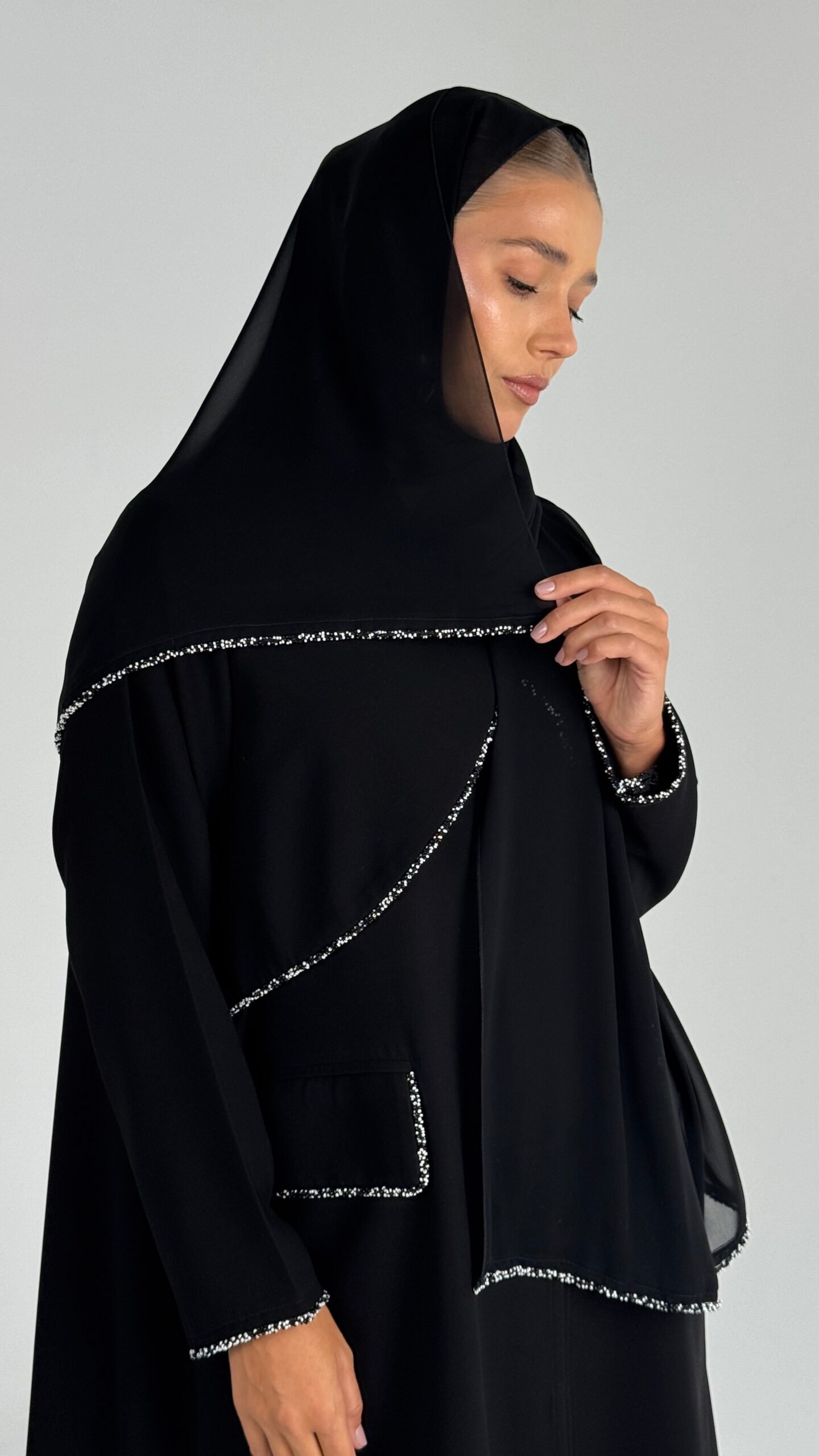 قصه كلوش تفاصيل الموديل واضحه بالصور ، الشيله فيها شغل مثل العبايه ، الخام كريب