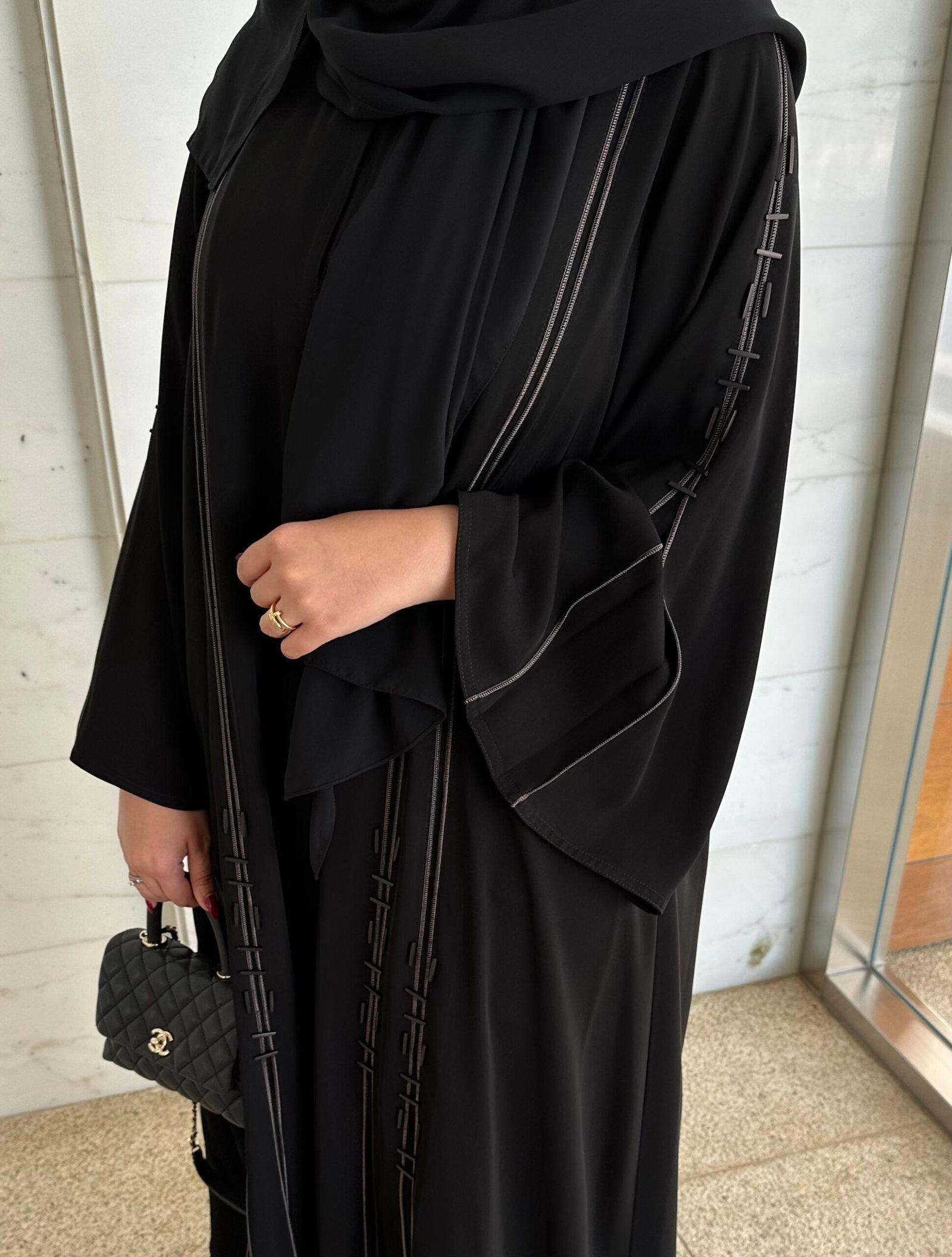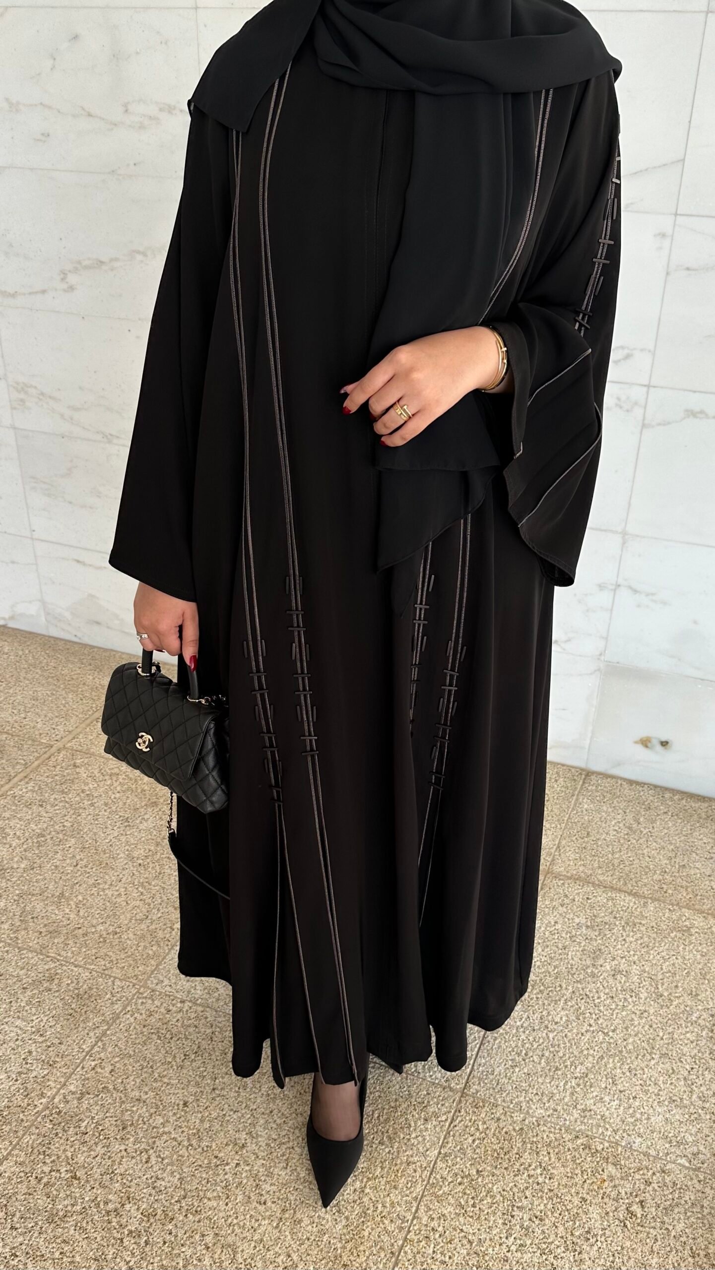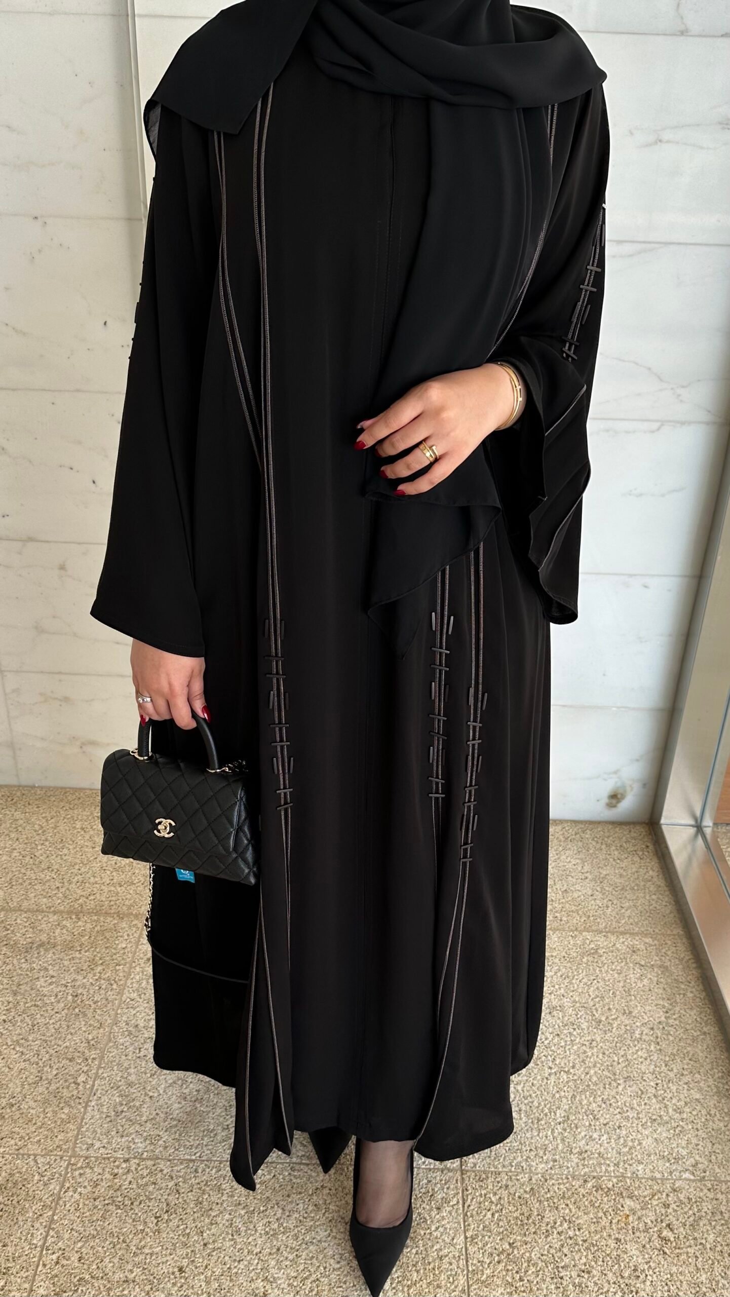 قصه دبل كلوش بكسرات وتطريز بلون الرمادي وشك بالحدايد السوداء لون التطريز يتغير حسب الطلب ، خام إنترنت كوري